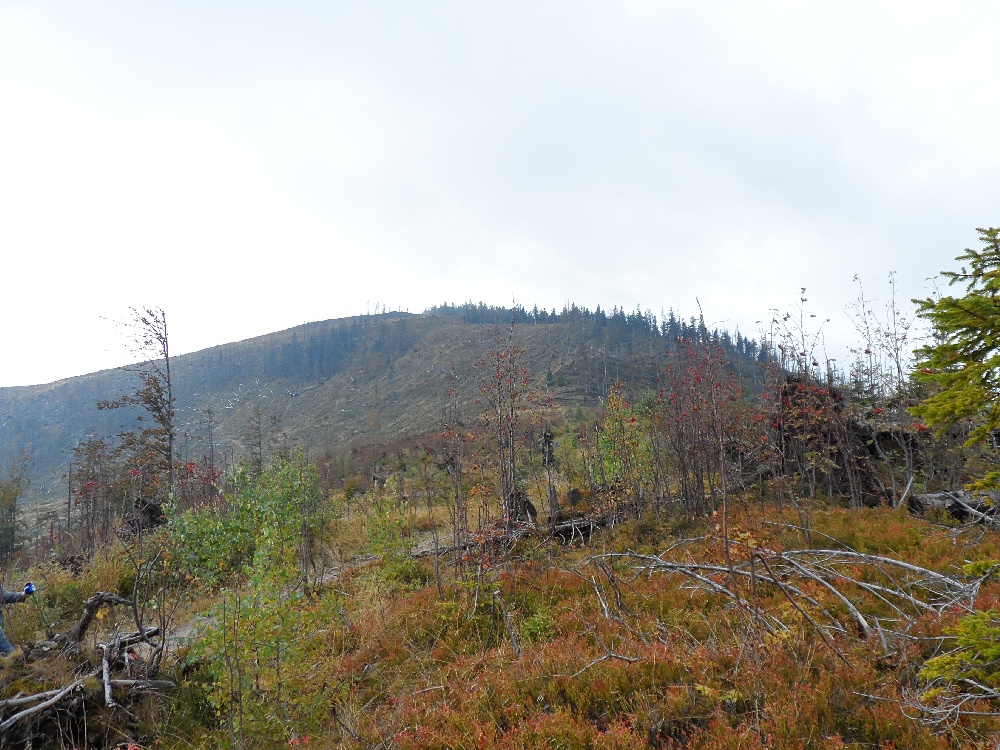 Barania Góra 1220m widok z wieży na Wierch Wisełka