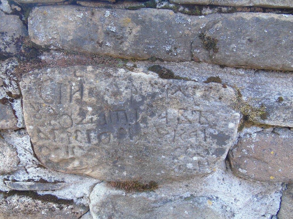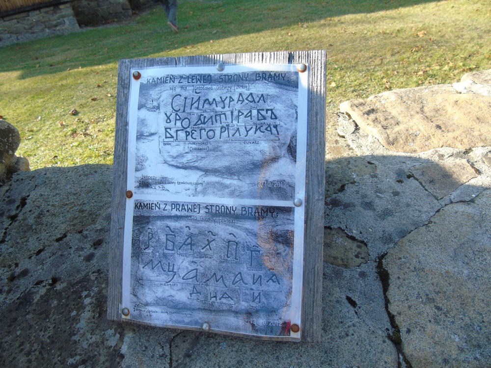 Napisy wyryte na kamieniach muru wokół cerkwi