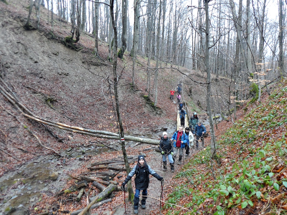 Jak narazie mgła u góry a my wąwozem powoli do góry
