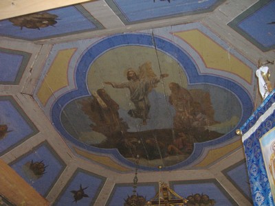 Niekompletny ikonostas z XIX wieku, na ścianach polichromia z 1896 r.