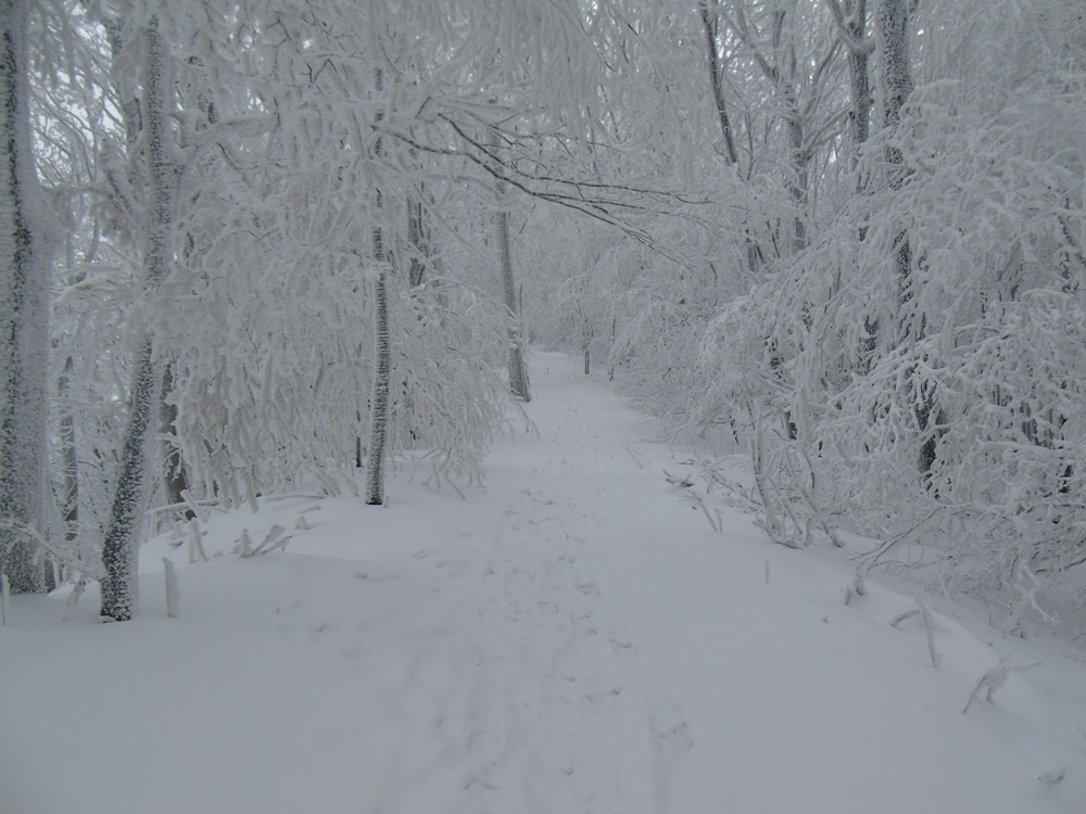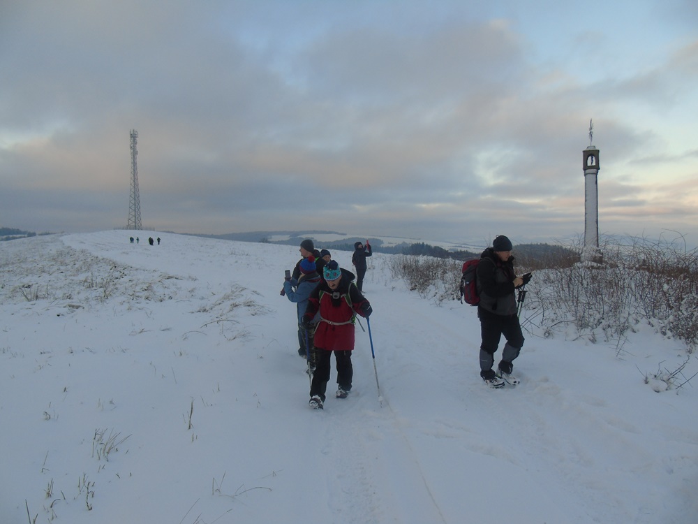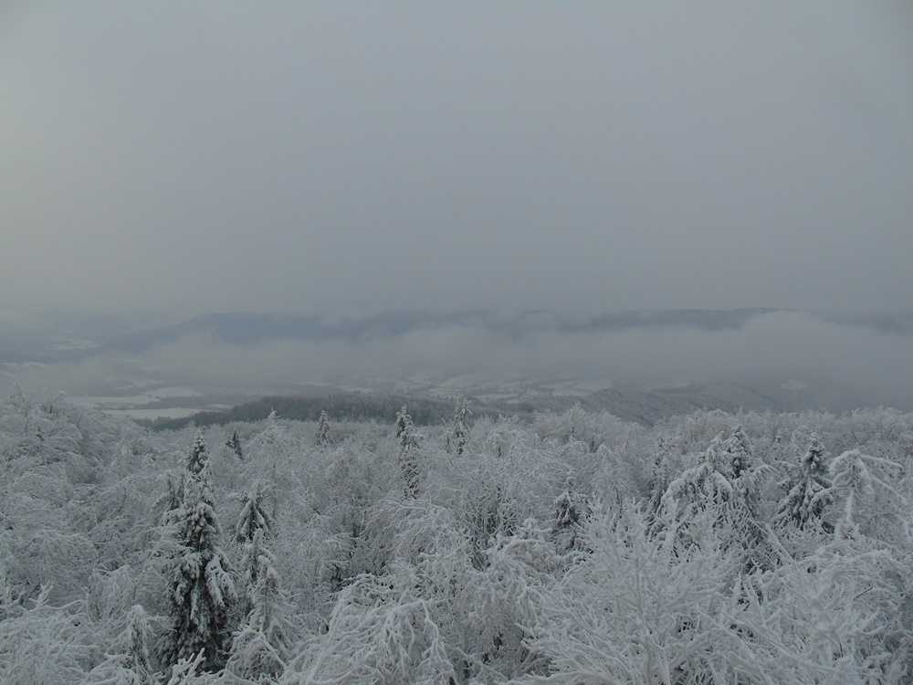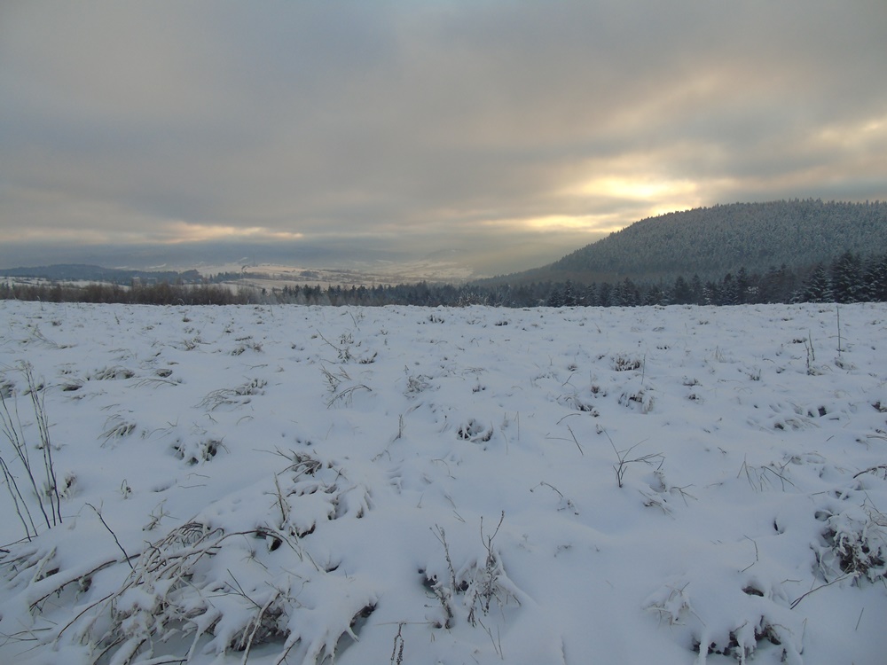 Widok z Kamińskiej na Przełęcz Szklarską (nadajnik] i wyżej Bania Szklarska