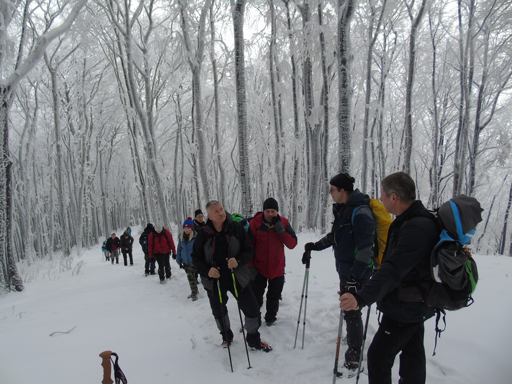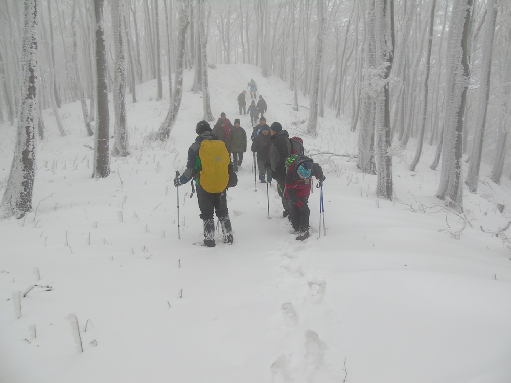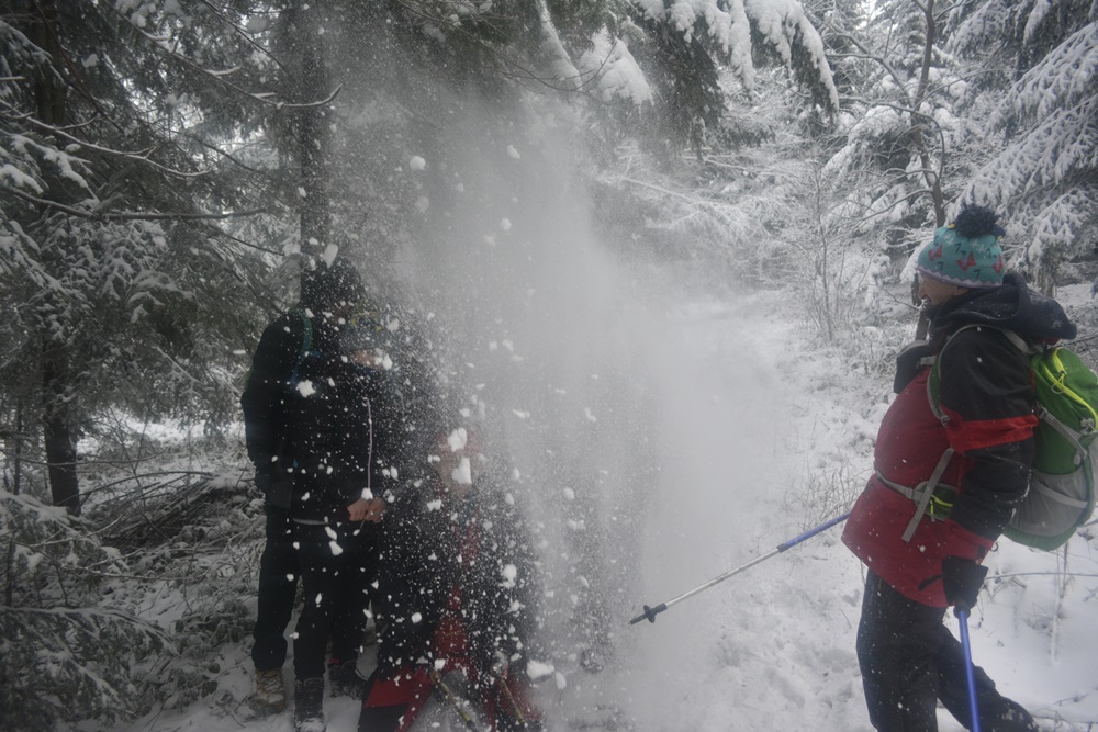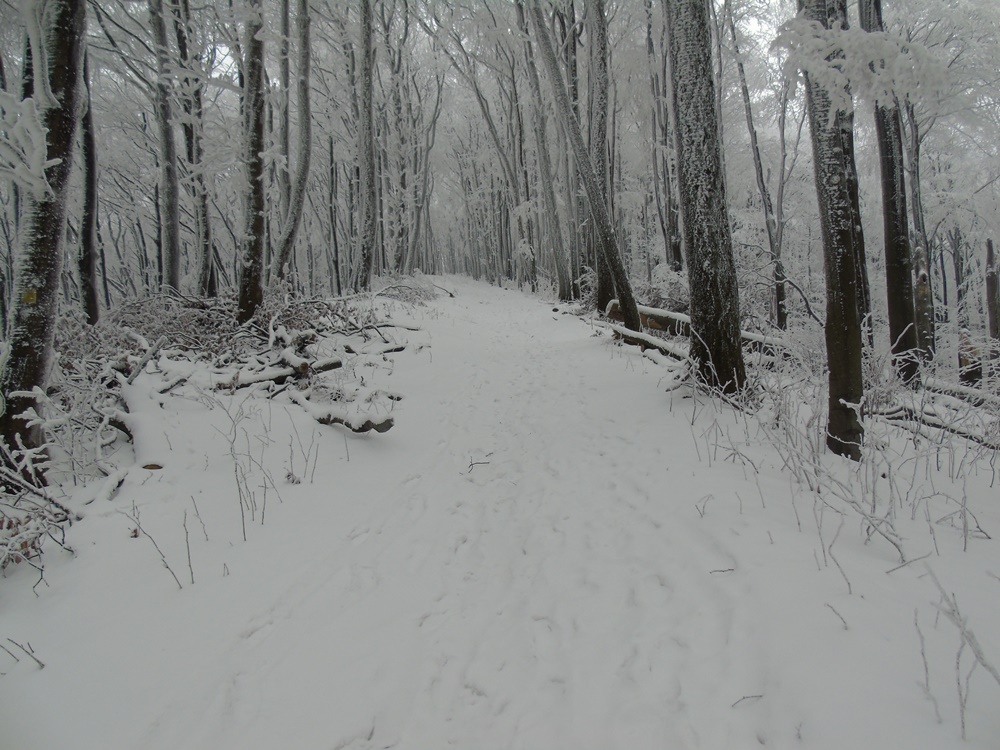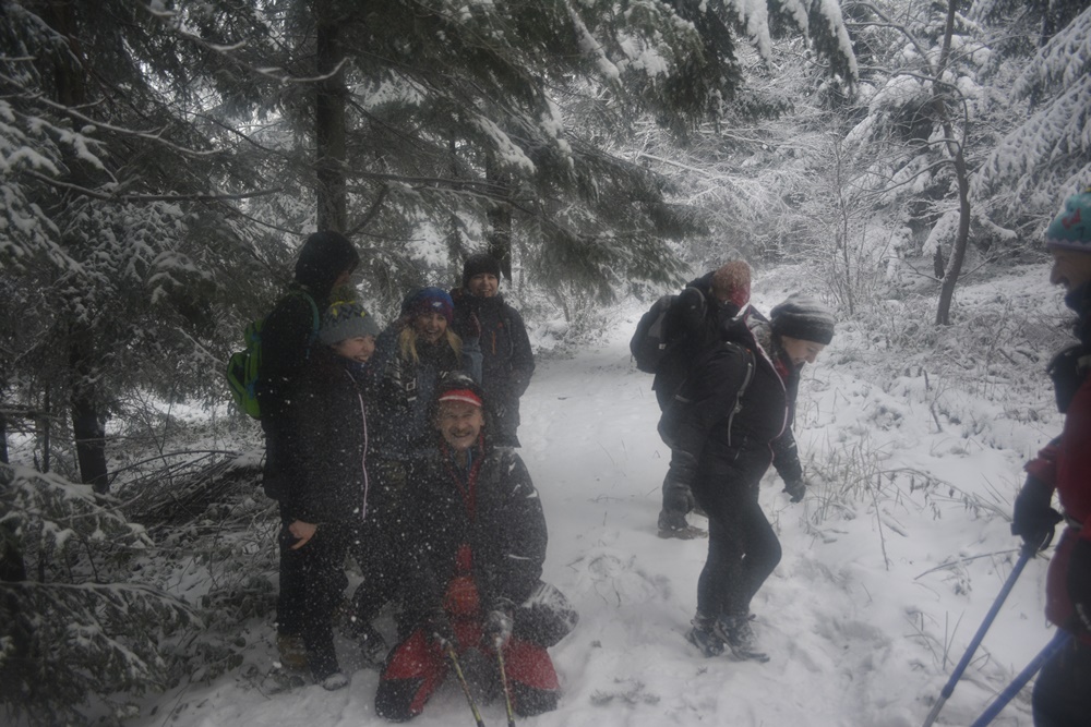 Widok z Kamińskiej na Przełęcz Szklarską (nadajnik] i wyżej Bania Szklarska