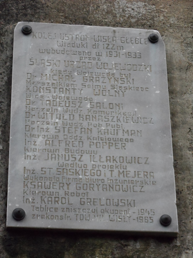 Pamiątkowa tablica na wiadukcie Wisła Głębce
