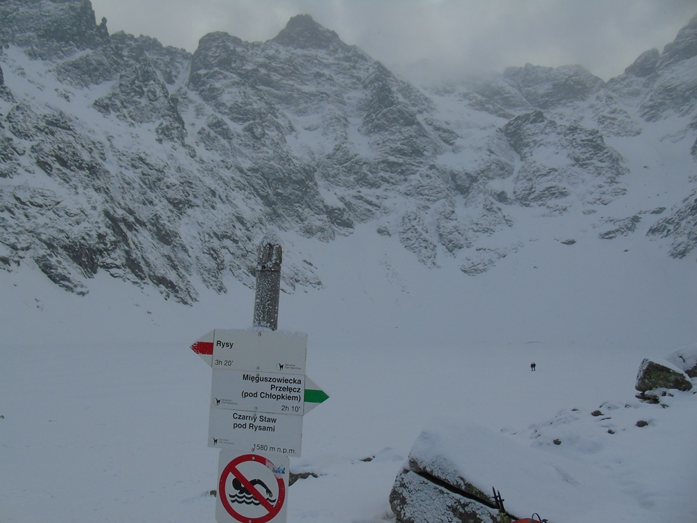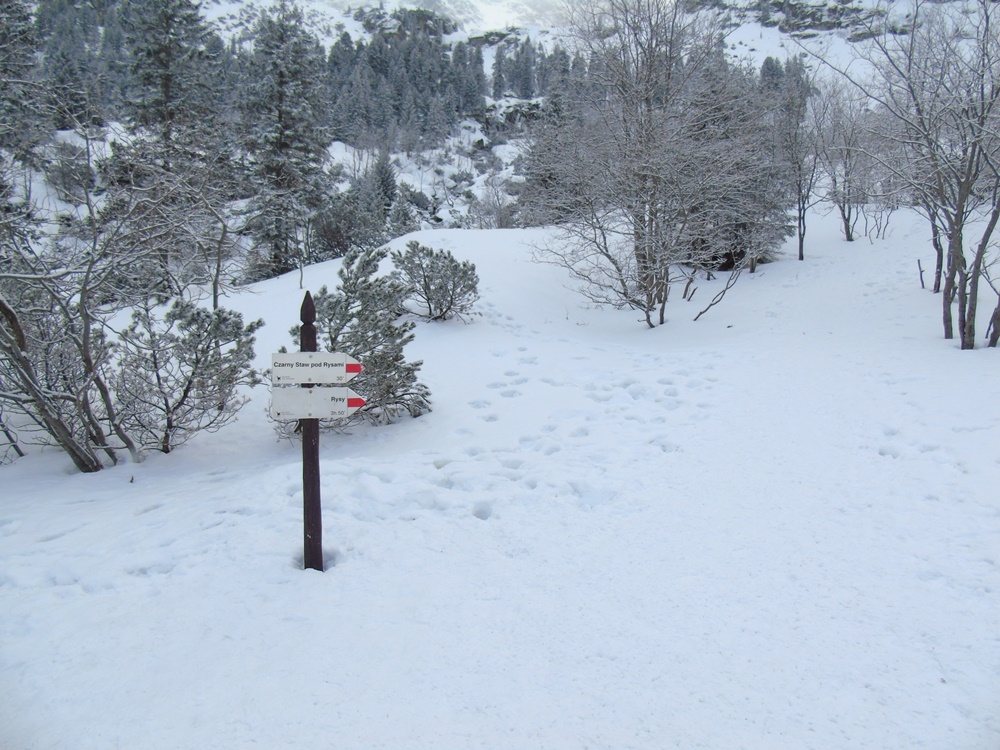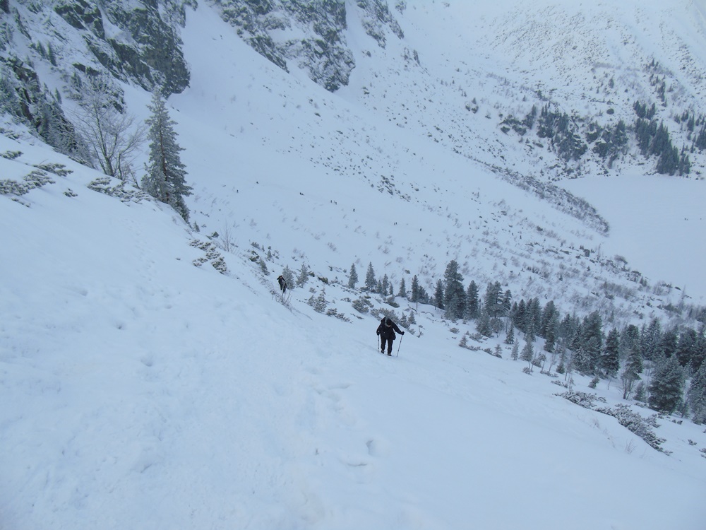 Zimą na dwa sposoby wchodzi się na Czarny Staw czyli szlakiem lub dużym zakosem