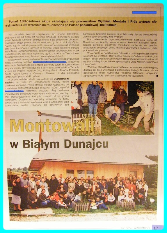 Przedstawiamy nasze relacje z prasy zakładowej, celowo usunięto nazwiska bo
