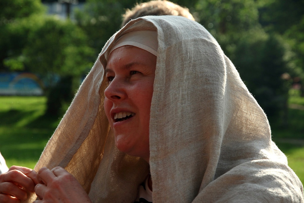 Pani Magda prezentuje co kiedyś noszono na głowie przez kobiety