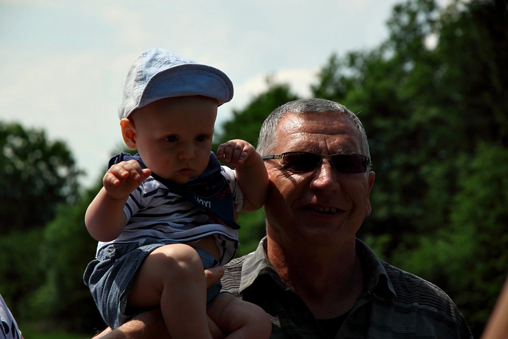 Przygotowanie do pamiątkowej fotki, Oskar jeszcze nie chodzi ale już wie, że niedługo ruszy z nami