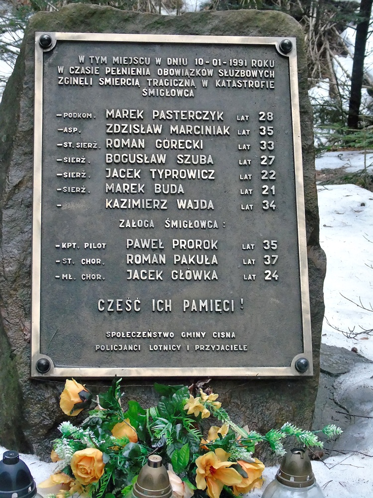 Pamiątkowa tablica w miejscu katastrofy śmigłowca podczas kręcenia 997