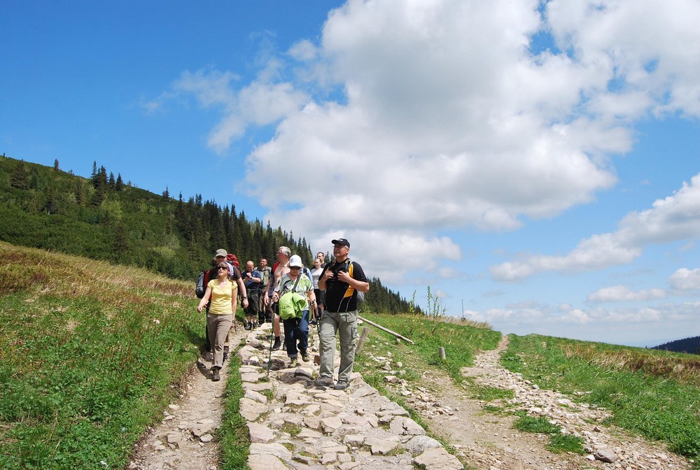 Jedna z grup rozpoczyna wędrówke na Kasprowy i Czerwone Wierchy