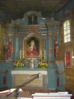 ołtarz główny.Świątynie otacza mur wzniesiony w XIX w.