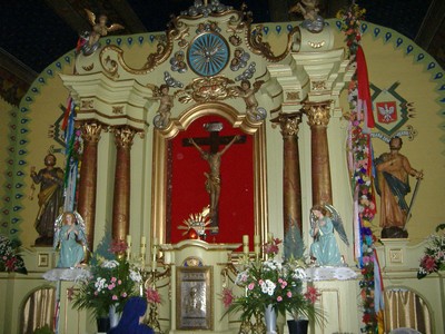 widnieje rzeźbiony krucyfiks, a w ołtarzu bocznym - obraz św.