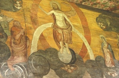 śladami polichromii (najprawdopodobniej pozostałości pierwotnego stropu)