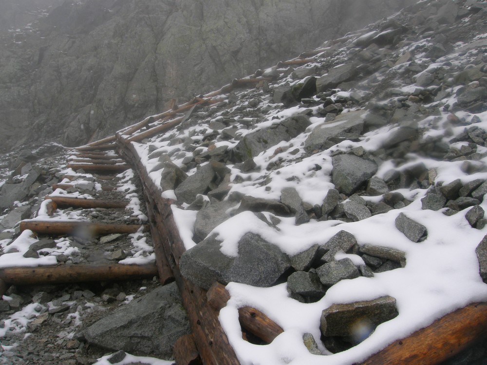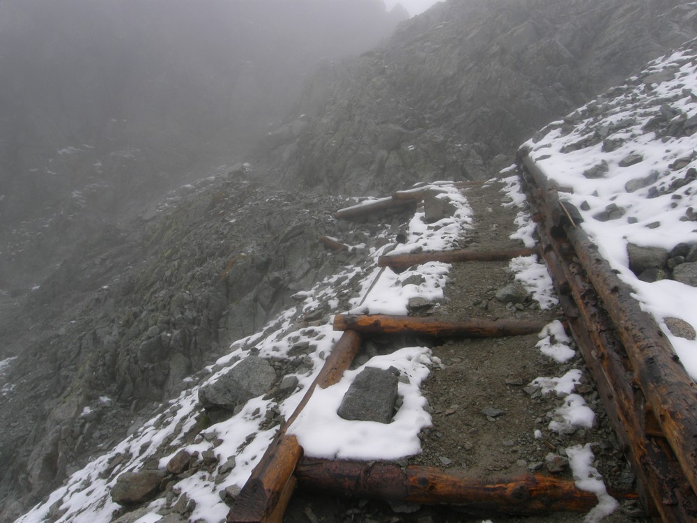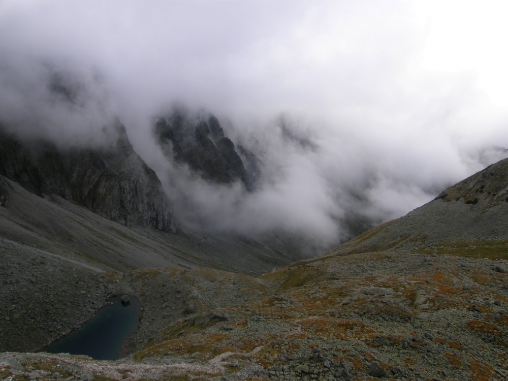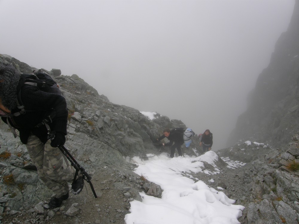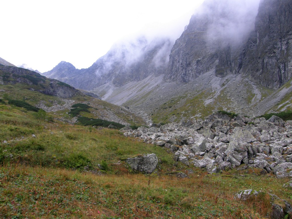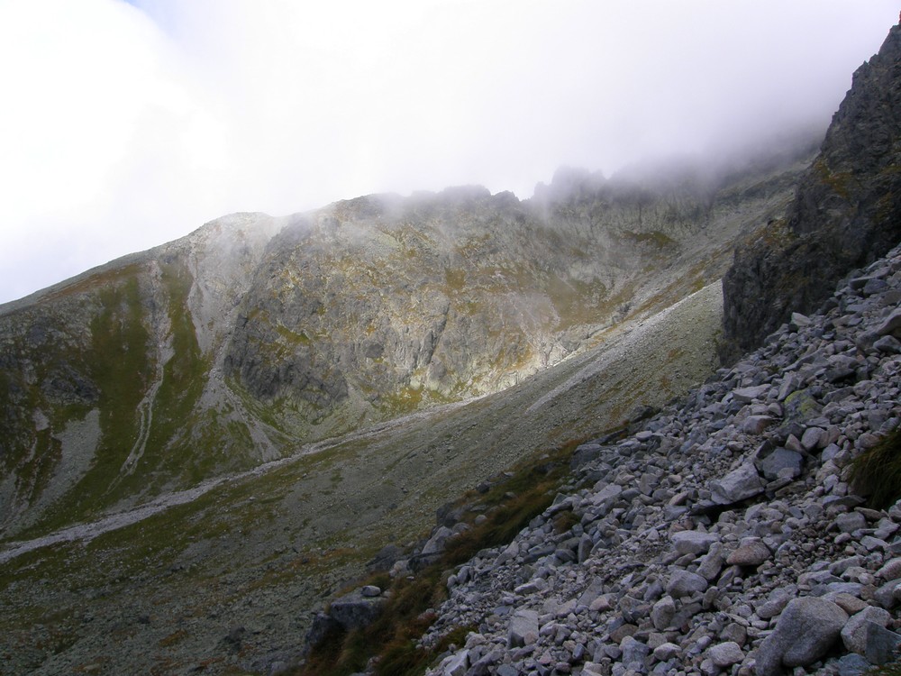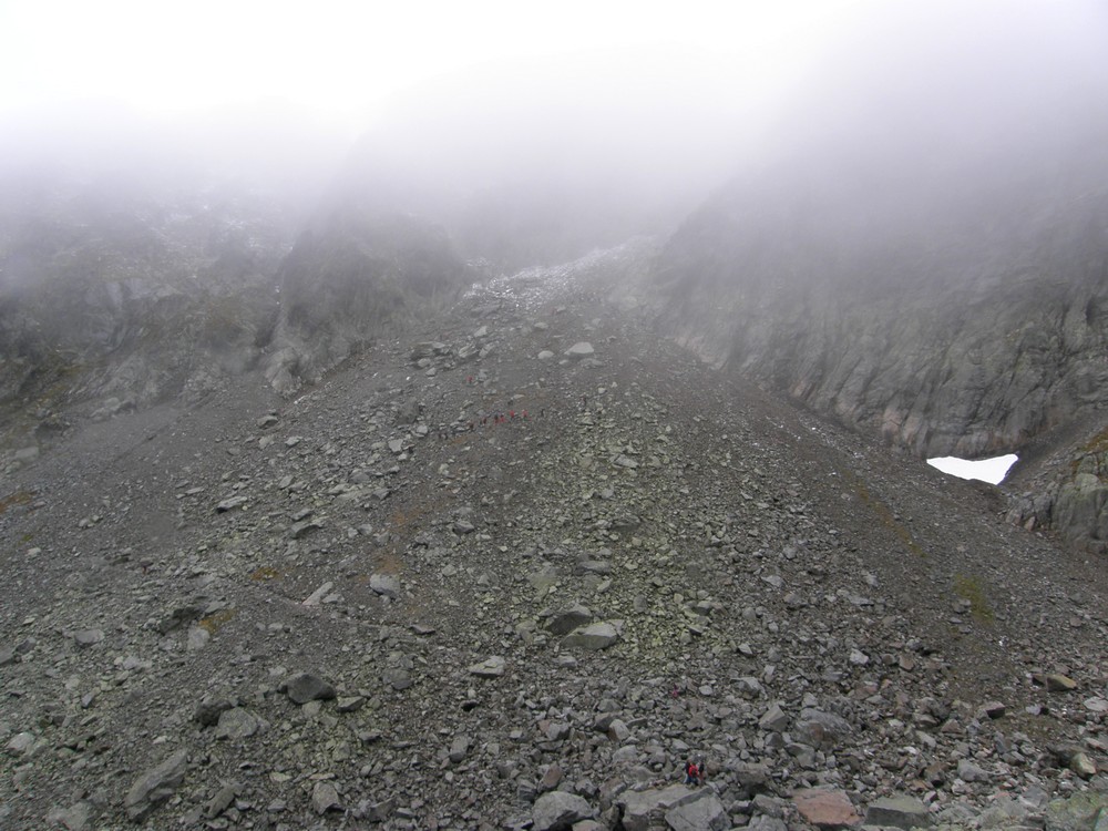 W mgłach ostro w dół w Zadnią Jaworową Dolinę
