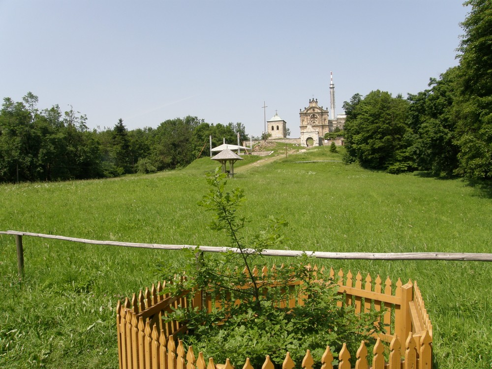 Widok na Klasztor i dąb im. Jana Pawła II