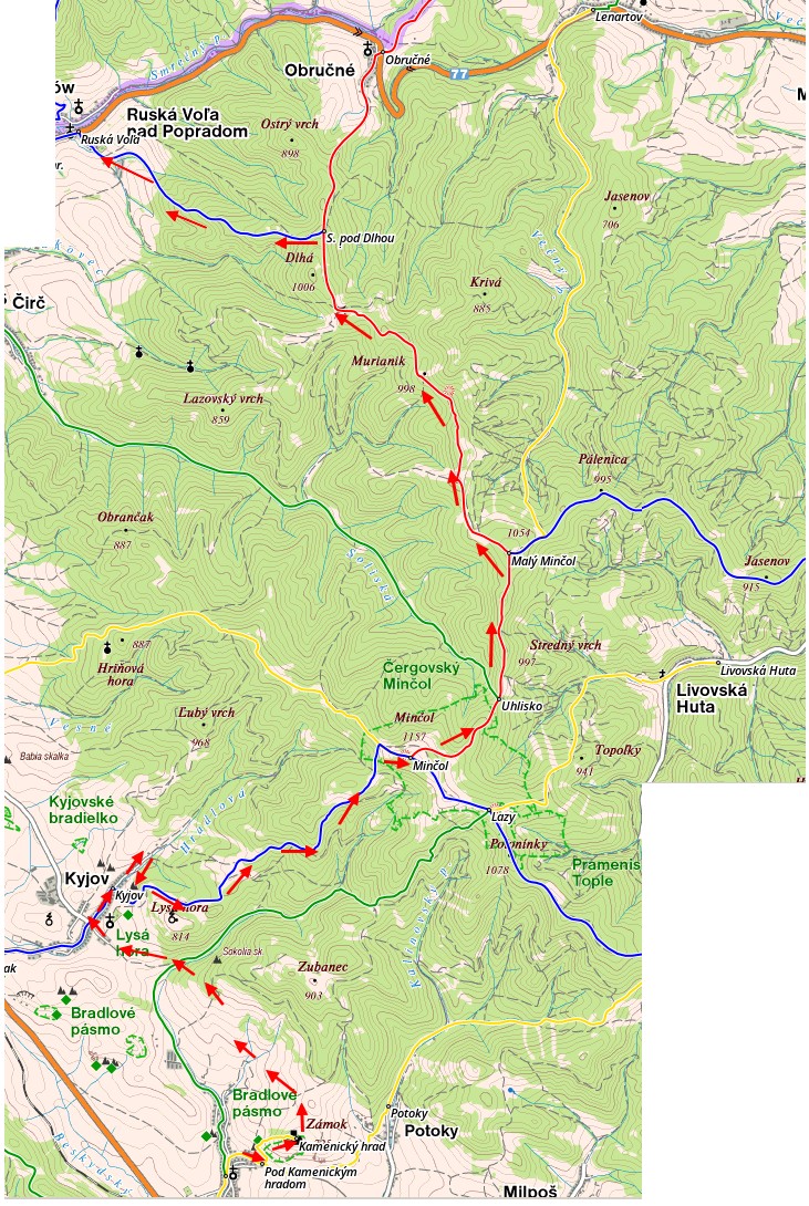Trasa przejścia z Kamenicy przez Mincol do Ruskej Voli
