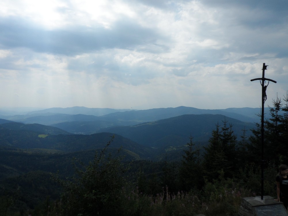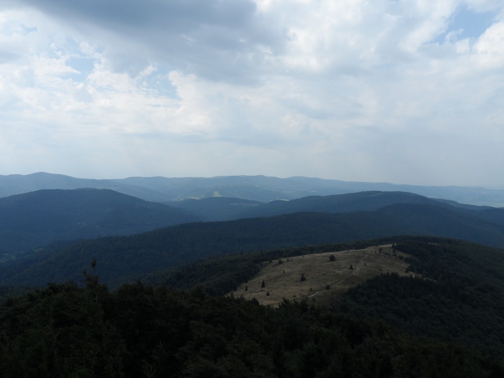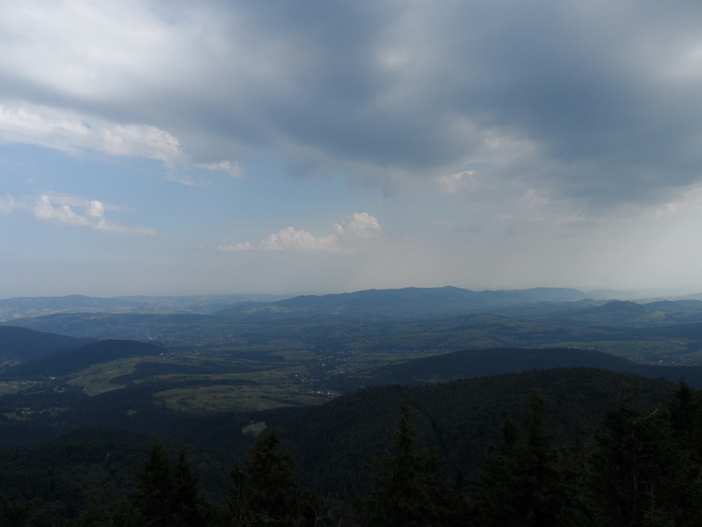 Mogielica, widok z wieży na Pasmo Łososińskie