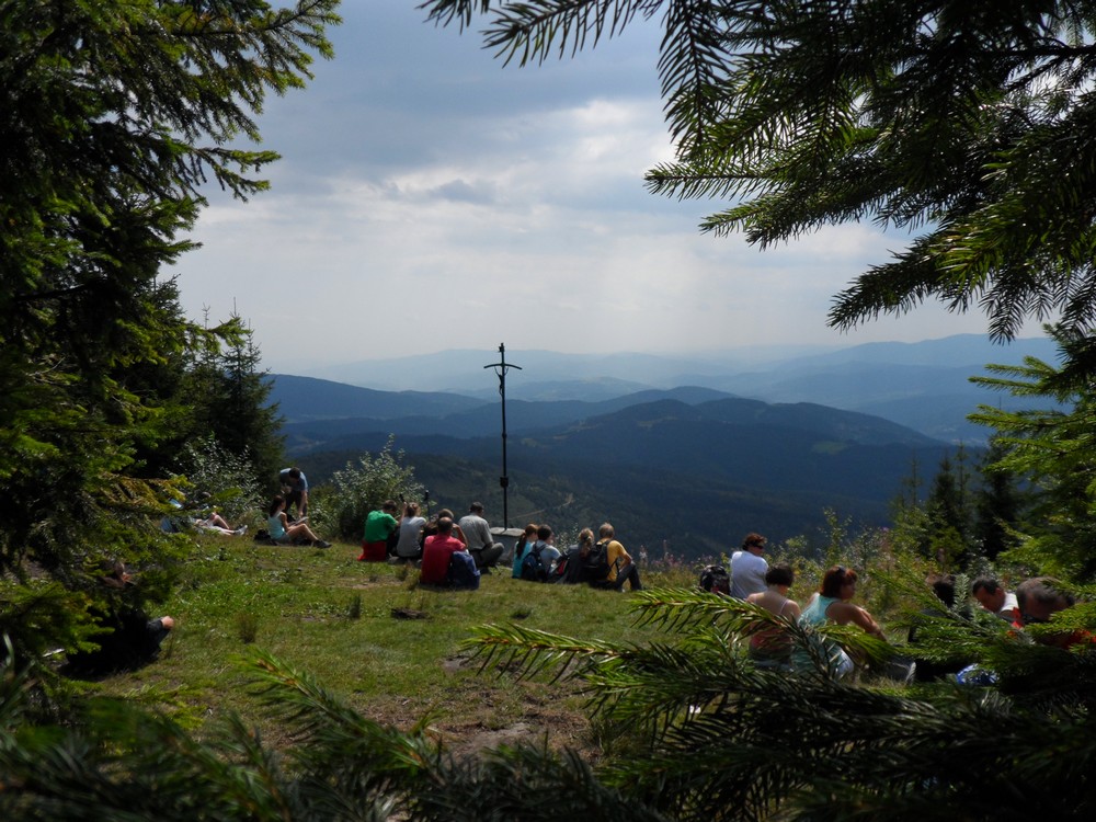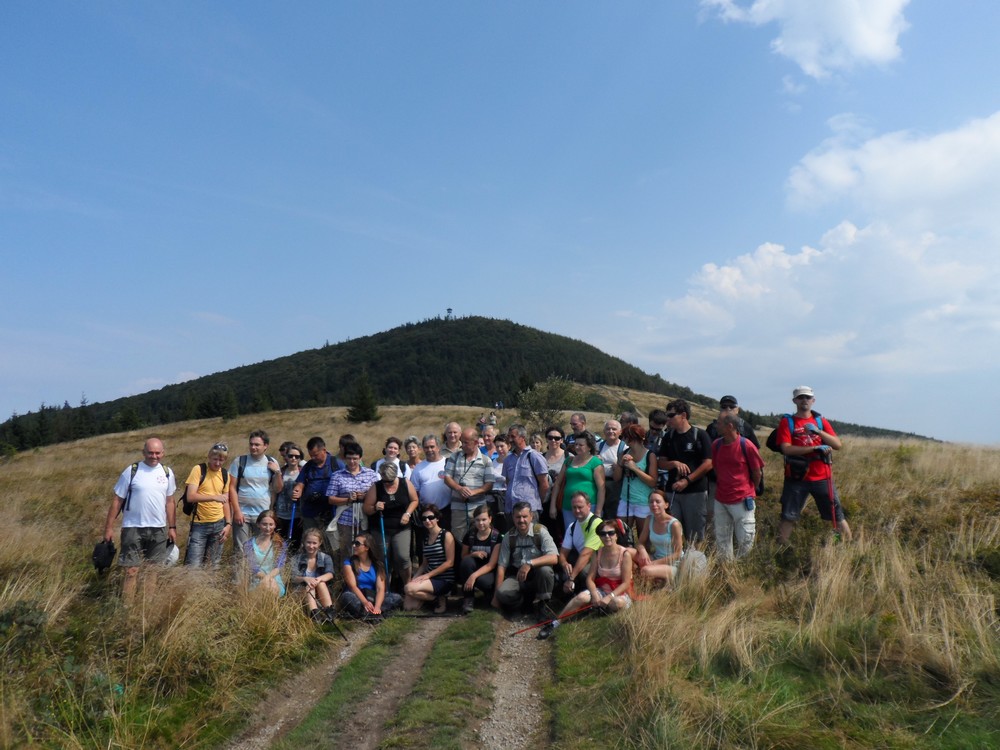 Pamiątkowa fotka na Polanie Stumorgowej, w tle Mogielica