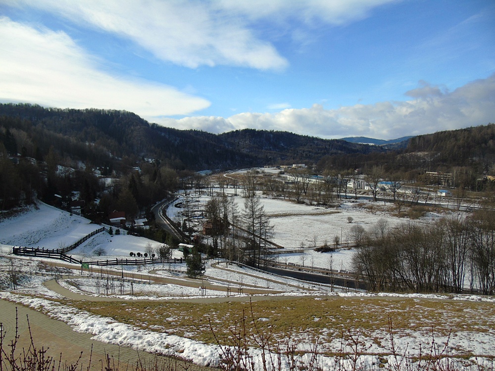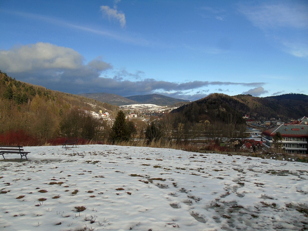 Wejście do Parku Zdrojowego, widok z stronę Jaworzyny Krynickiej