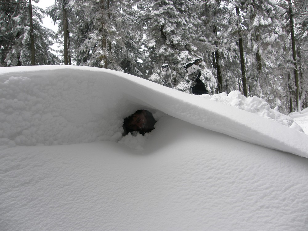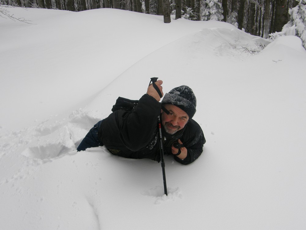 Ciekawie sie schodzi w śniegu po pas
