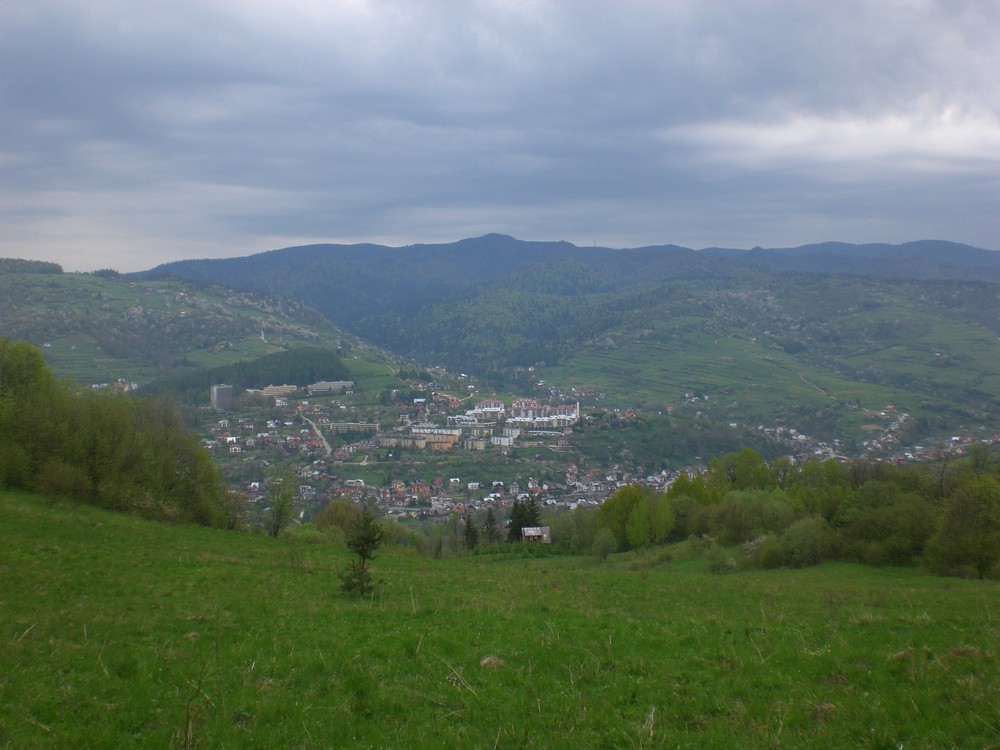 Widok na Szczawnicę z pasa granicznego.