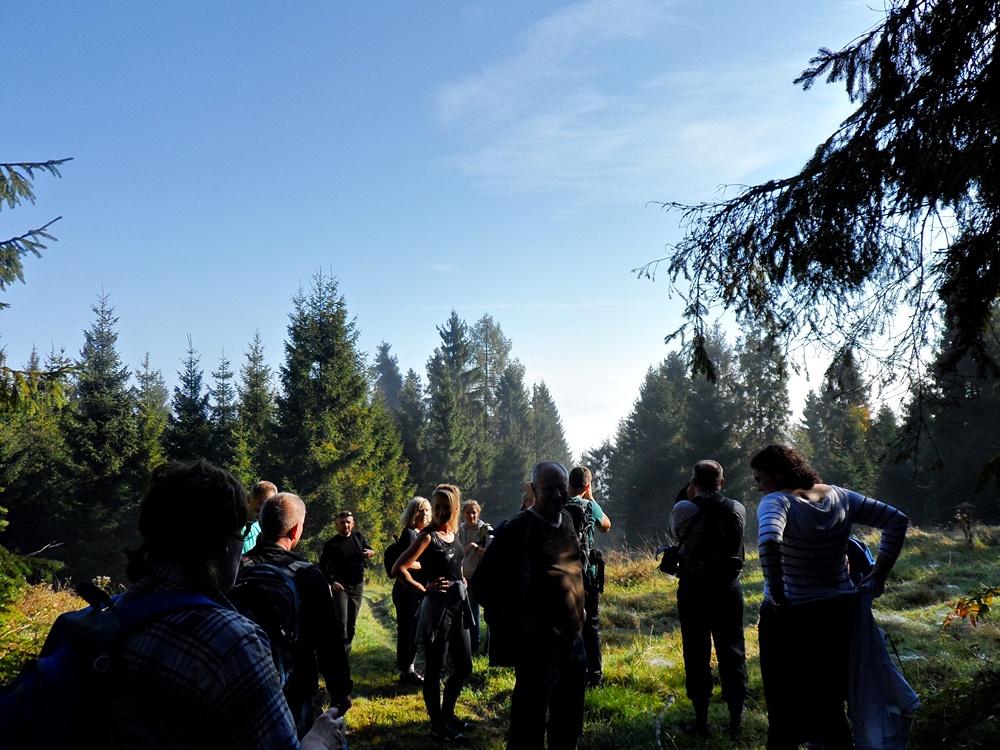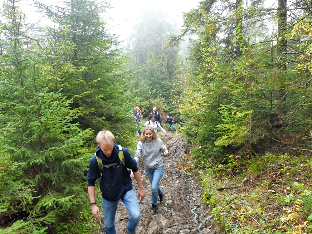 Grupa górska rusza z Łapsz Wyżnich na Pawlików Wierch 1016 m
