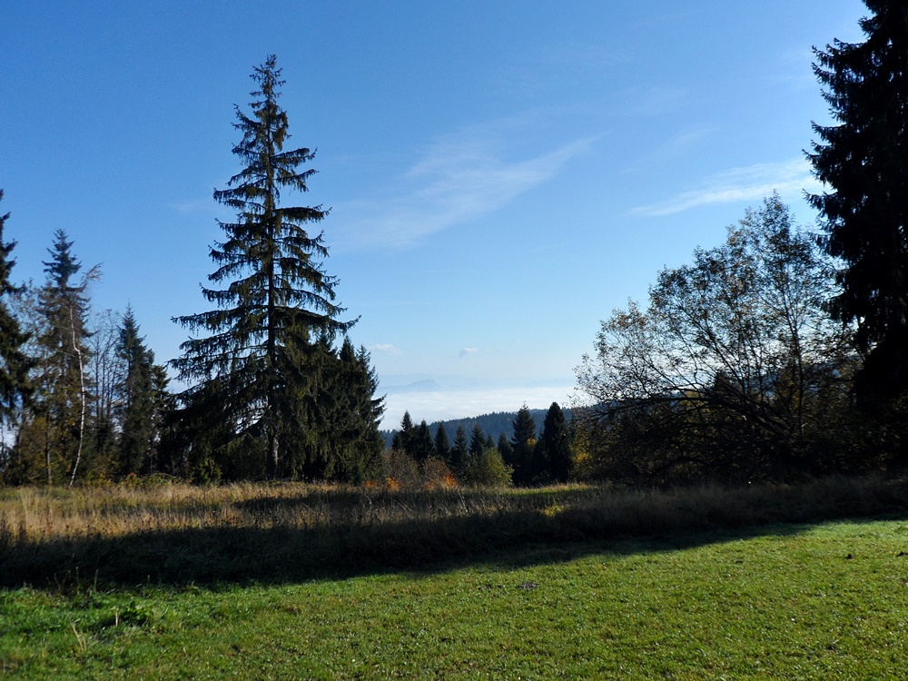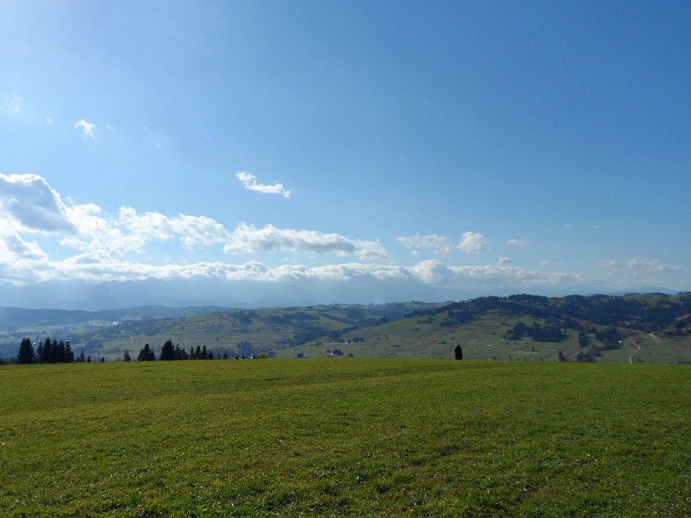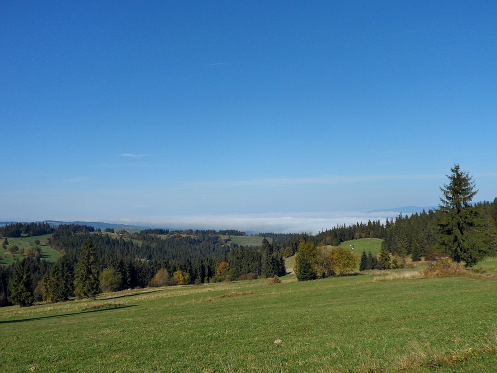 Jesteśmy coraz wyżej i widok na Trzy Korony i morze mgły na dole