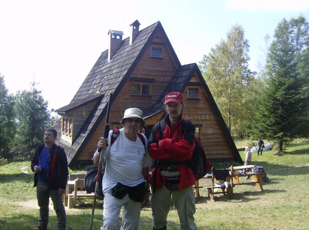 Halik i Bociek na tle Chaty Socjologów