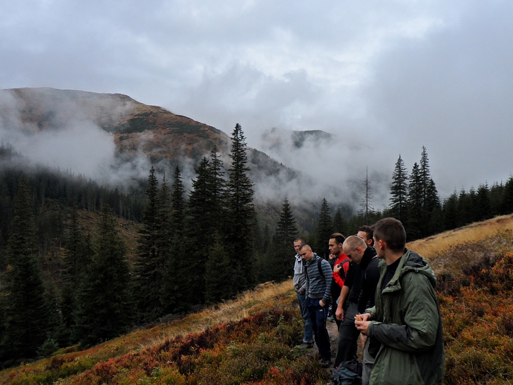 Zaczynamy jedno z nieprzyjemnych 200 m podejść najpierw na Kończysty