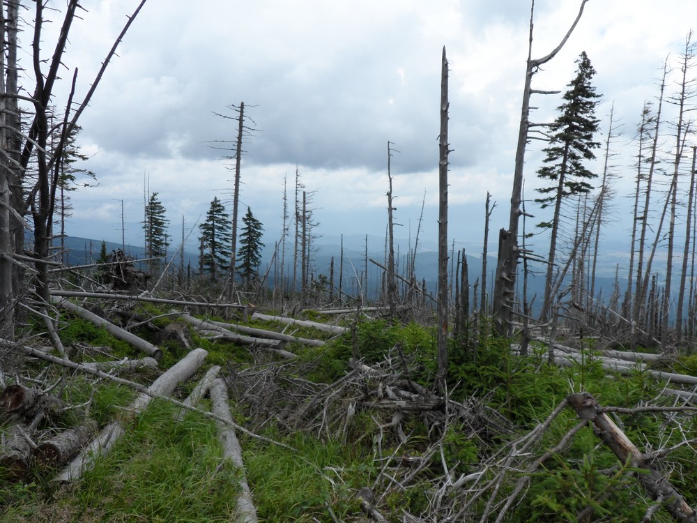 W kierunku Przełęczy Karkonoskiej wśród martwego lasu