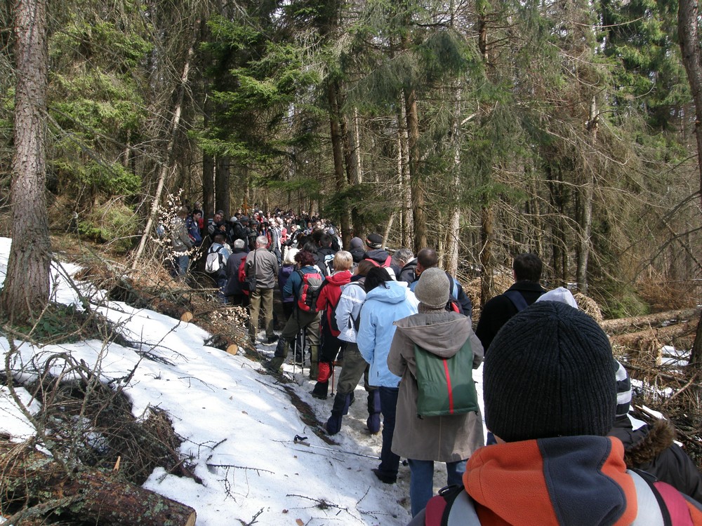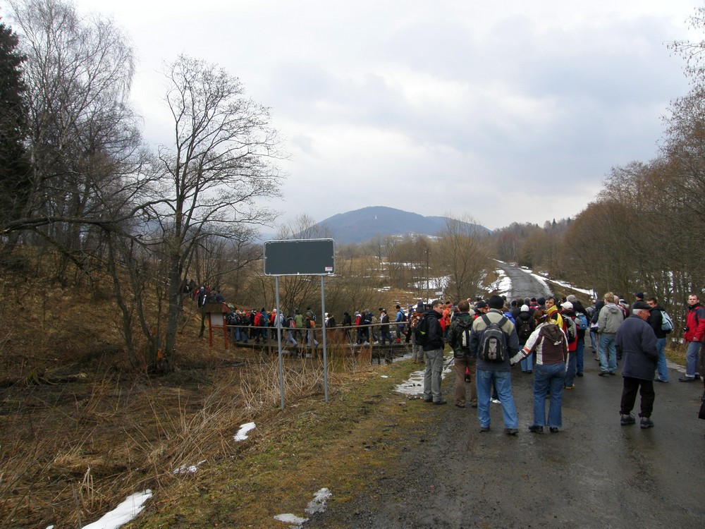 Gruga grupa po wyjściu z lasu w tle Rawki