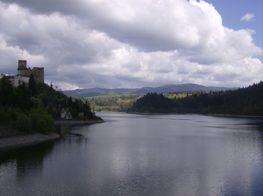 Widok na zamek w Niedzicy z zapory.