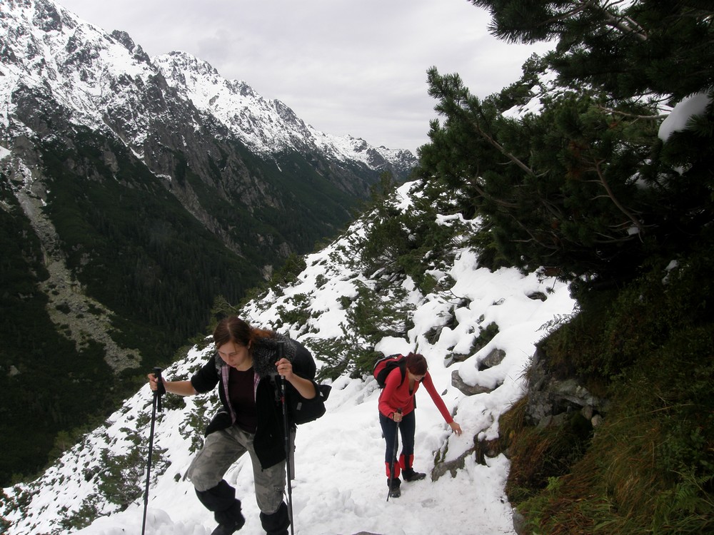 Początek podejścia na Schronisko na Piątce już ze śniegiem