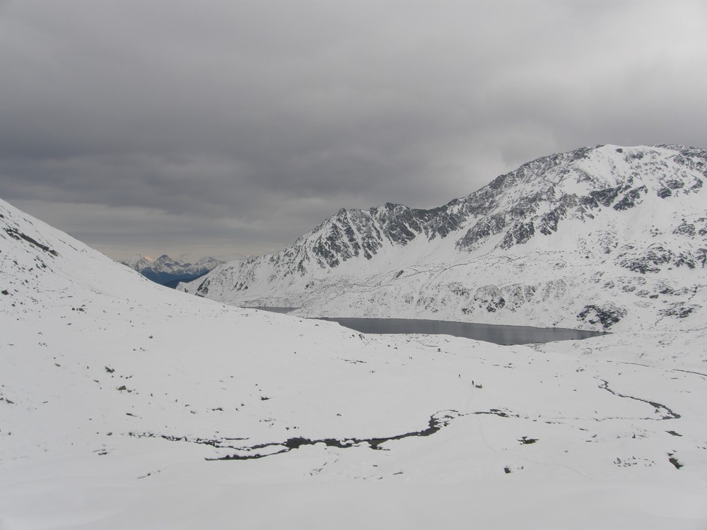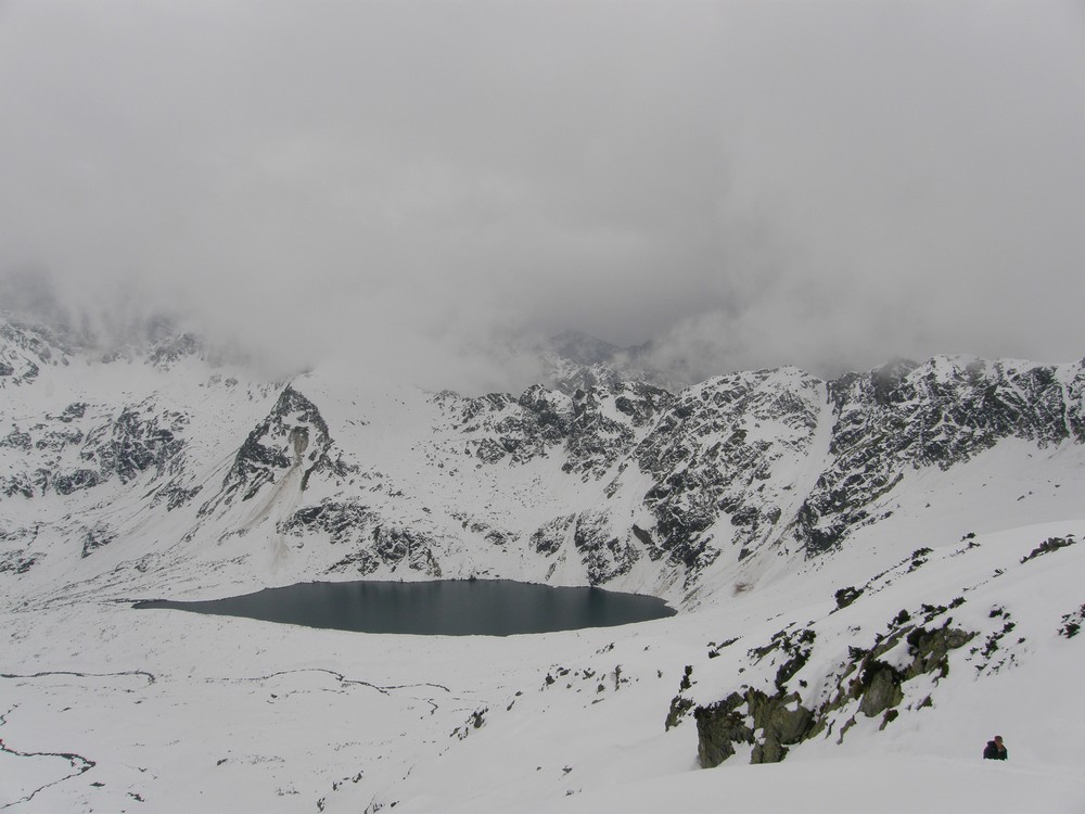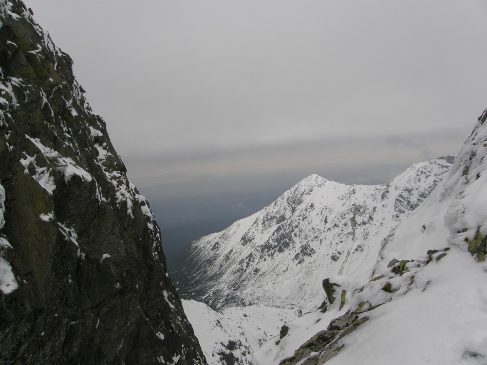 Zawrat 2158 m widok na Dolinę Gąsienicową, po lewo Żółta Turnia