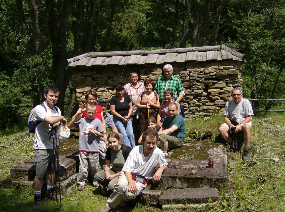 Pamiątkowa fotka przy obelisku źródła Sanu